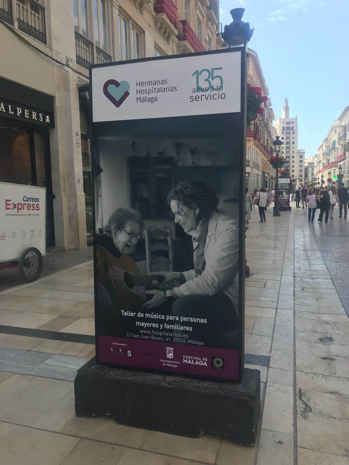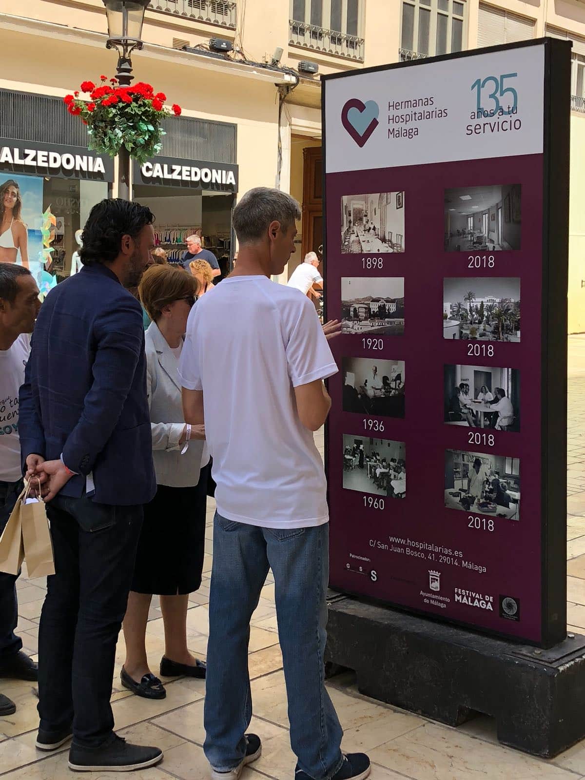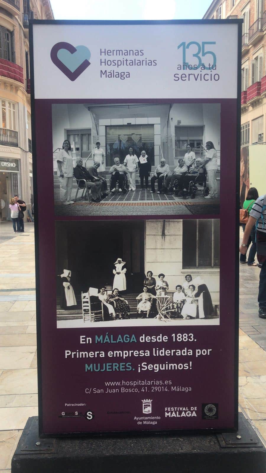 Desde hoy y hasta el próximo 10 de junio, la céntrica calle Larios de Málaga acoge la exposición “135 AÑOS A TU SERVICIO” de Hermanas Hospitalarias. Un conjunto de 40 fotografías donde se hace un recorrido a la historia de unas mujeres, Hermanas Hospitalarias, que hace 135 años llegaron a Málaga con el objetivo de poner en marcha un centro donde atender a mujeres con enfermedad mental. Cinco mujeres luchadoras que con su esfuerzo y tesón levantaron el Centro, donde hoy colaboran cientos de personas entre profesionales, hermanas y voluntarios, y donde son atendidas diariamente unas 400 personas.