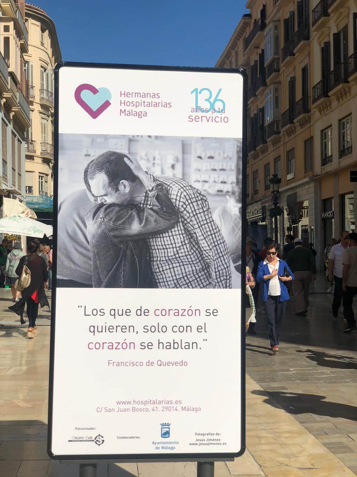 Desde hoy y hasta el próximo 27 de octubre, la calle Larios acoge la exposición “DESDE EL CORAZÓN” de Hermanas Hospitalarias Málaga. Un conjunto de 40 fotografías donde se hace un recorrido por el día a día de la labor que se realiza en este centro. Hace 136 años llegaron las primeras hermanas a Málaga con el objetivo de poner en marcha un centro donde atender a mujeres con enfermedad mental. Inicialmente, 5 mujeres luchadoras y comprometidas con el carisma hospitalario, ponen en funcionamiento un centro donde hoy más de 240 profesionales y 9 Hermanas Hospitalarias ofrecen una asistencia integral humanizada a más de 600 personas anualmente.